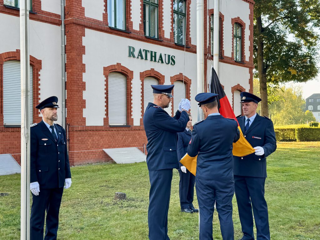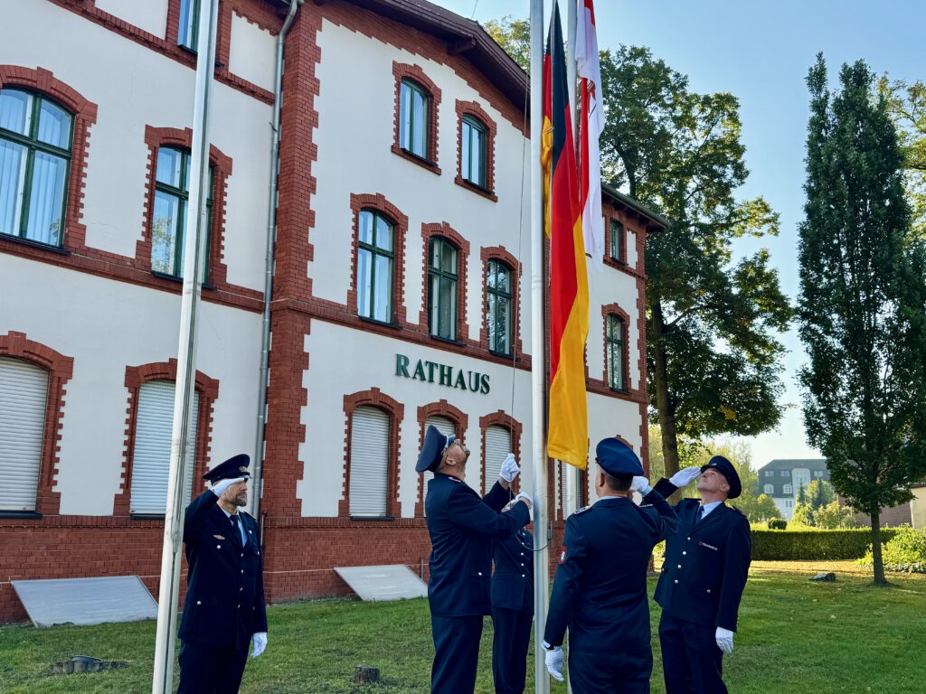 Ab 10 Uhr bis 18 Uhr fand auf dem Gutshof hinter dem Rathaus Großbeeren ein abwechslungsreiches Festprogramm statt. Höhepunkte waren die Flaggenparade mit Gottesdienst, Live-Musik lokaler Bands sowie das Gesprächsformat „Demokratie im Dialog“, bei dem Bürgerinnen und Bürger in kurzen Gesprächen Kommunalpolitiker kennenlernen konnten.